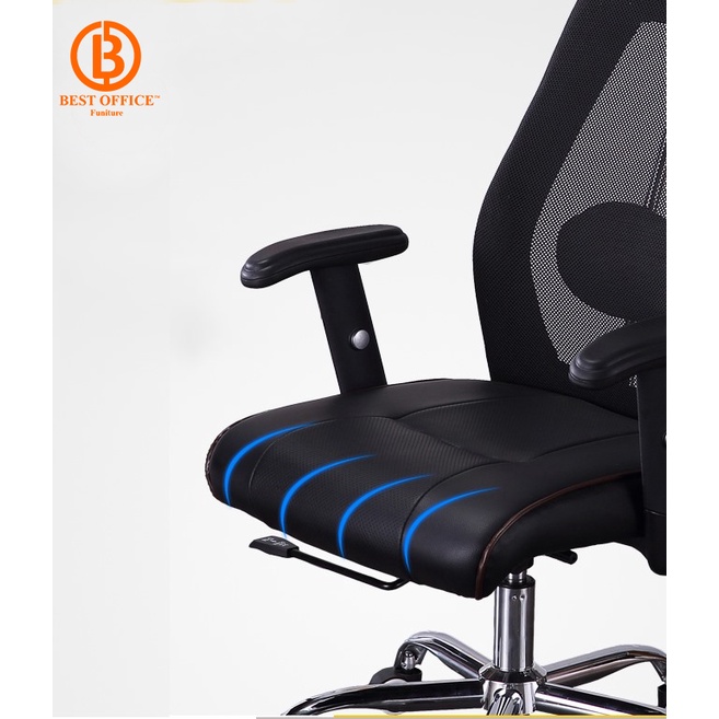 Ghế Trưởng Phòng cao cấp TP68, ghế ngả lưng thư giãn, Đệm da siêu êm, lưng lưới siêu thoáng