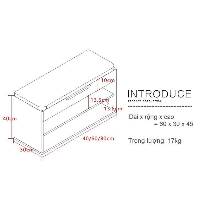 Kích thước sản phẩm: 60 x 30 x 45 (Dài x rộng x cao)