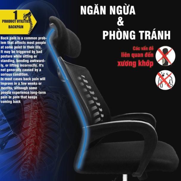 – Gối tựa đầu bọc vải lưới êm ái, thiết kế gắn liền với khung tựa có tác dụng nâng đỡ vùng đầu, đốt sống cổ, vai gáy…hạn chế mỏi cổ khi ngồi làm việc thời gian dài.