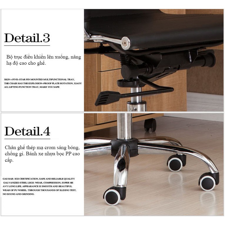 – Khung ghế được làm bằng chất liệu thép mạ crom chịu lực tốt, đảm bảo an toàn tuyệt đối cho người ngồi khi ngã tựa về sau.