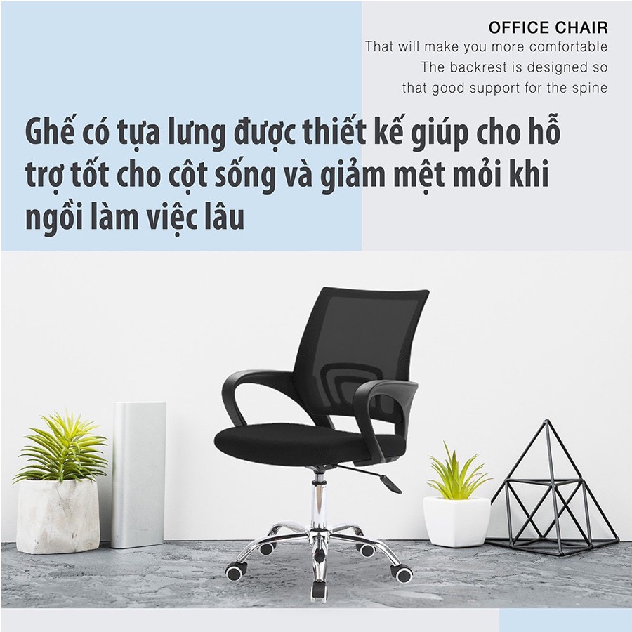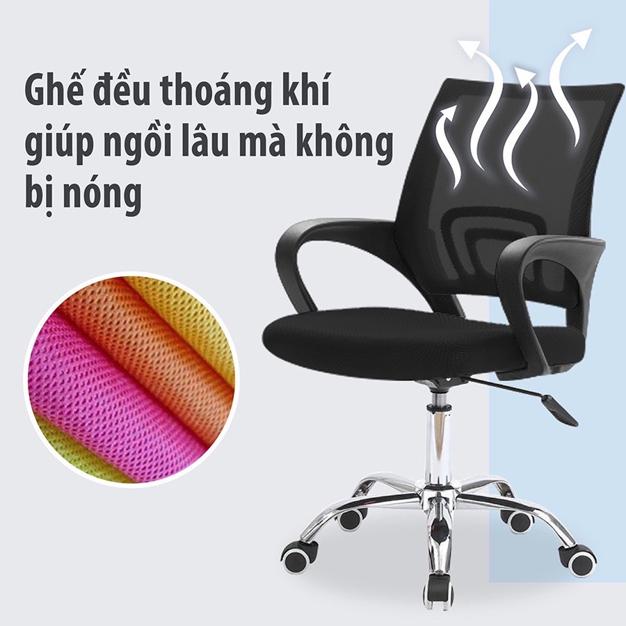 GHẾ XOAY LƯỚI - GHẾ XOAY VĂN PHÒNG- Có cần điều chỉnh lên xuống trong khoảng 43cm - 53cm.