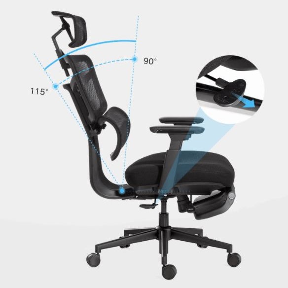 - Lưng ghế có thể điều chỉnh từ 95-115* để đảm bảo tư thế ngồi mà vẫn phù hợp nhu cầu thư giãn