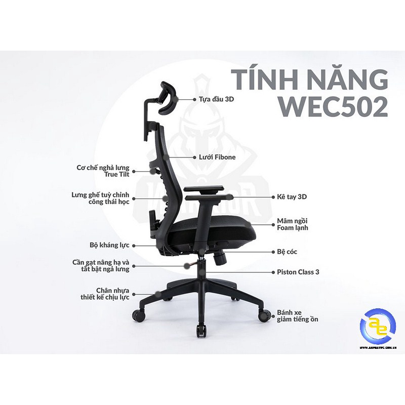 Giới thiệu Ghế Văn Phòng Công Thái Học WEC502, Chống Đau Mỏi Lưng Tay Gấp Nệm Lưới Tựa Đầu Cao Cấp
