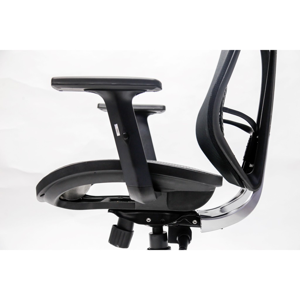 Khung ghế bằng nhựa (có 1 số đoạn bằng kim loại) nhưng rất chắc chắn, không cho cảm giác ọp ẹp lung lay. Lưng ghế thiết kế dạng lưới căng, đỡ phần lưng người dùng tựa vào và có thể nghiêng theo lực tựa của người dùng.