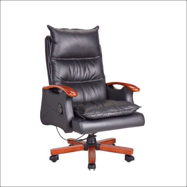 Một mẫu ghế văn phòng giám đốc có thiết kế cực kỳ sang trọng và đẳng cấp. Với 2 lớp nệm mút da PVC cao cấp, dày và êm ái, giúp bạn có một tư thế ngồi thoải mái nhất. Hai bên là hai tựa tay bằng gỗ tự nhiên phủ PU cánh dán sang trọng.Phần chân ghế là khung sắt bọc gỗ tự nhiên kết hợp hệ thống 5 bánh xe, hệ thống tăng giảm chiều cao mặt ghế linh động. Đây là một mẫu ghế xoay văn phòng dành cho giám đốc, trưởng phòng mới và rất được ưa chuộng hiện nay.