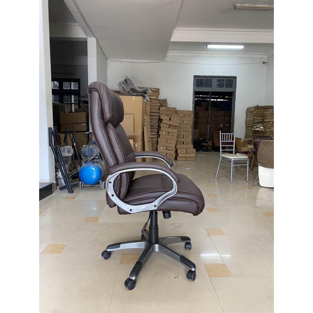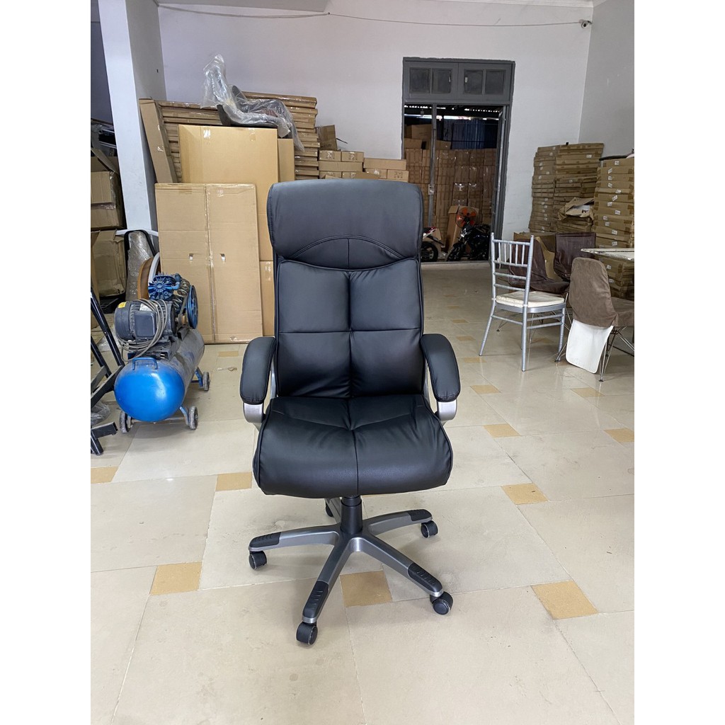 Ghế văn phòng hiện đại. Một thiết kế đẹp mắt và sang trọng dành cho không gian phòng giám đốc, trưởng phòng. Với bề mặt ghế bằng nệm da PVC cao cấp kết hợp chân nhựa đúc ấn tượng, mẫu ghế là một sự lựa chọn hoàn hảo cho không gian bàn làm việc.Ghế gồm hệ thống 5 bánh xe di chuyển linh động. Cần gạt điều chỉnh cao độ mặt ghế phù hợp với cao độ mặt bàn. Ghế có thể xoay 360 độ một cách dễ dàng nhờ hệ thống trục xoay liên kết giữa chân ghế và mặt ghế. Hai tay vịn hai bên được làm bằng chất liệu nhựa đúc cao cấp, phần bên trên đượng làm bằng nệm mút bọc da PVC giúp bạn tựa tay một cách êm ái.