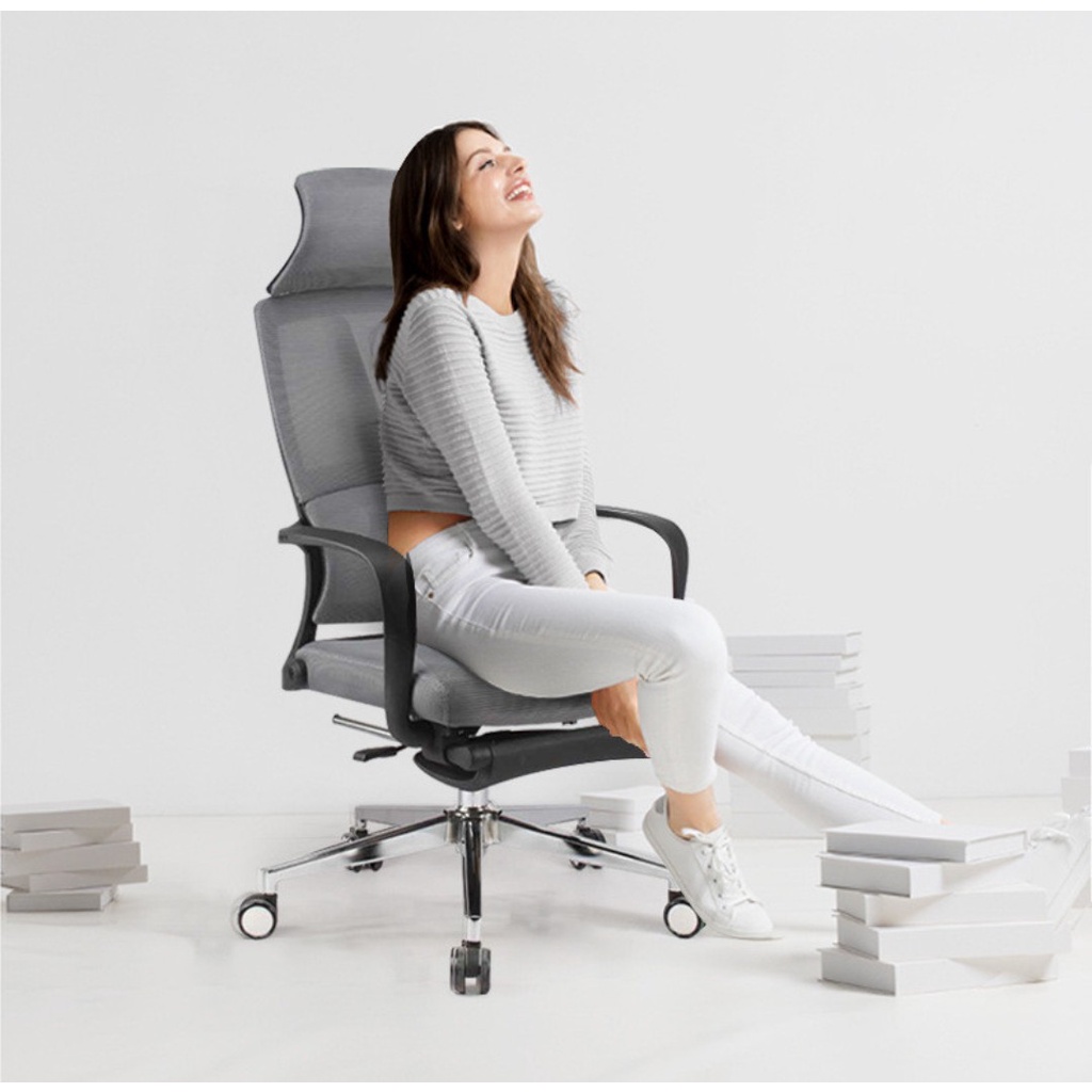 - Dòng Ghế văn phòng Lưới Lưng Cao Cực Êm, Có Ngả Lưng và Gác Chân thư giản.