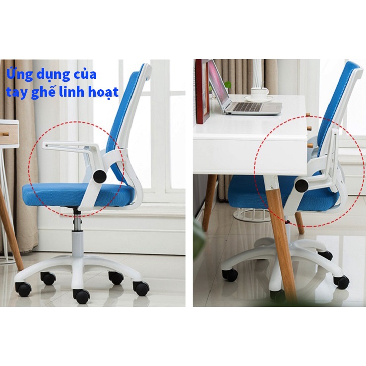 ✔️Tay ghế gấp gọn linh hoạt tiết kiệm không gian khi không sử dụng, hoặc tạo cảm giác thoáng, không gian mở trong quá trình làm việc
