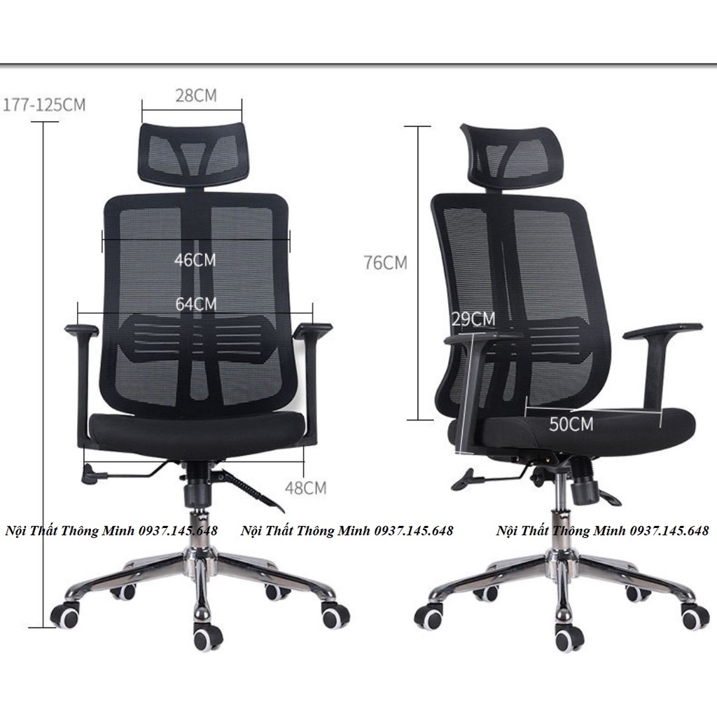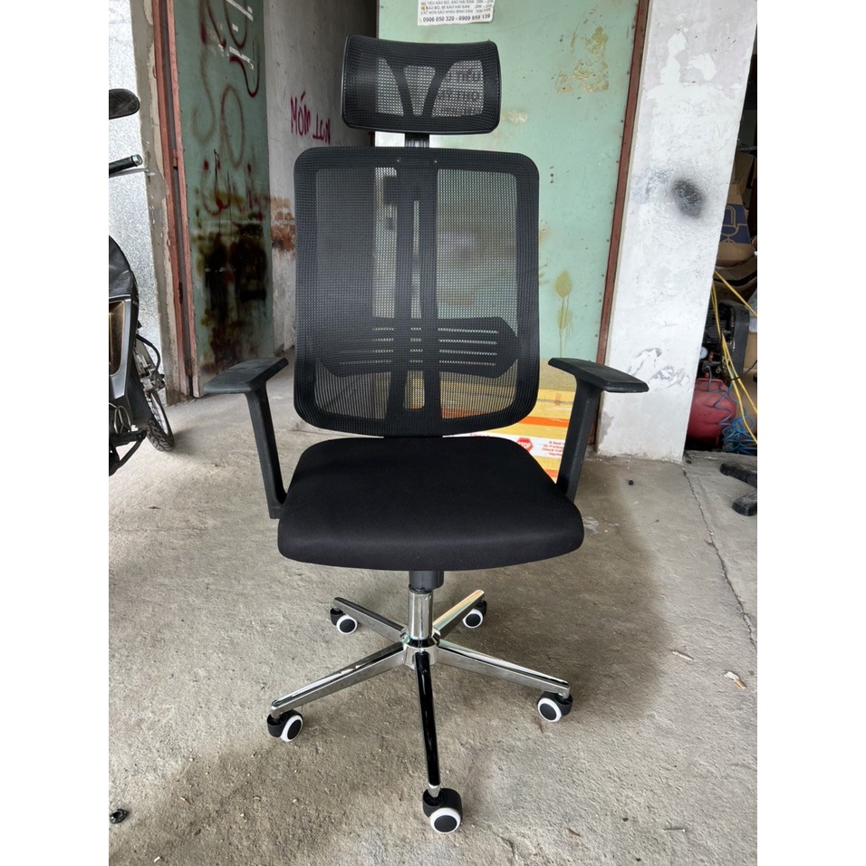 Tựa lưng ghế: Tựa lưng ghế khung bằng nhựa, bọc lưới, lưng ghế cố định