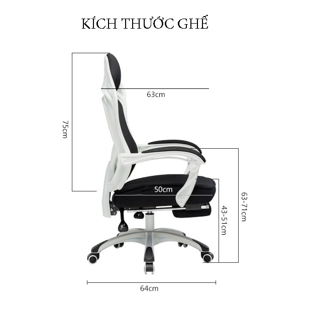 - Chiều cao mặt ngồi: 43-51 cm
