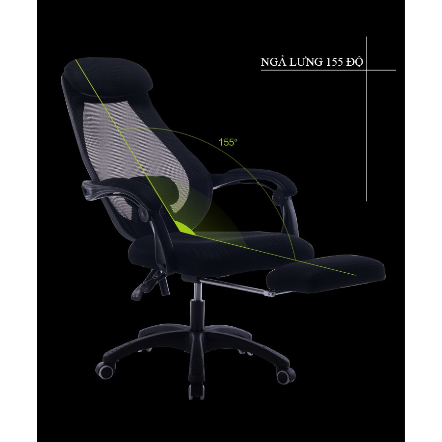 Giới thiệu Ghế văn phòng lưng lưới tựa đầu chân xoay GVP801