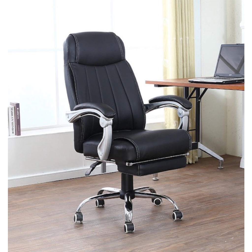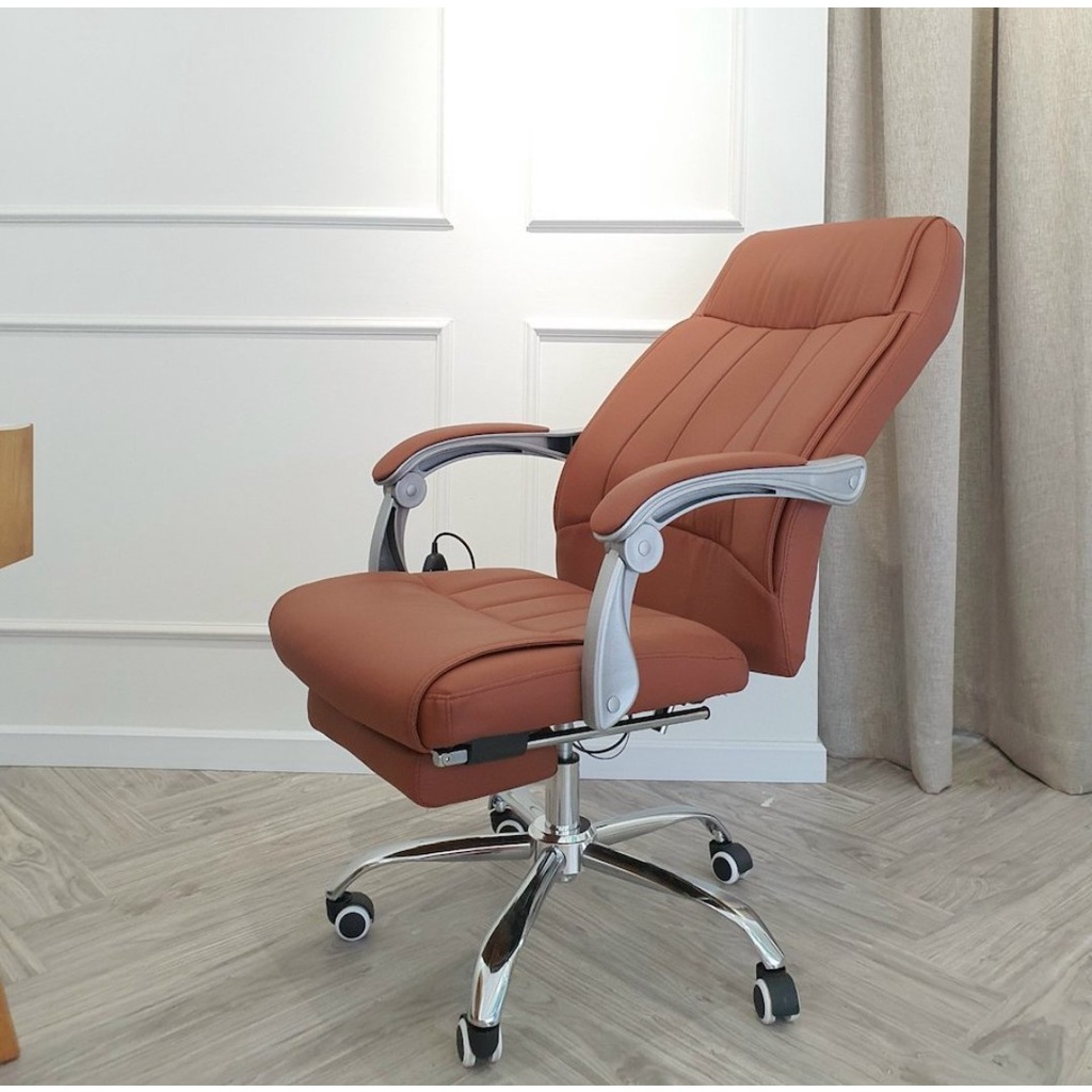- Chất liệu ghế da PU cao cấp, chân mạ chắc chắn, có bánh xe duy chuyển thuận tiệnNgả lưng 175 độ thư giãn thoải mái.