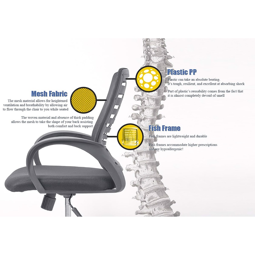Dòng ghế được tạo ra từ sự nghiên cứu chuyên sâu về thói quen cũng như sức khỏe của đối tượng văn phòng.Xoay hướng làm việc: Chiếc ghế lưới ngả lưng chân xoay có bánh xe trượt phía dưới tiện lợi. Giúp bạn có thể xoay chuyển dễ dàng mọi góc độ để trao đổi công việc với mọi người.