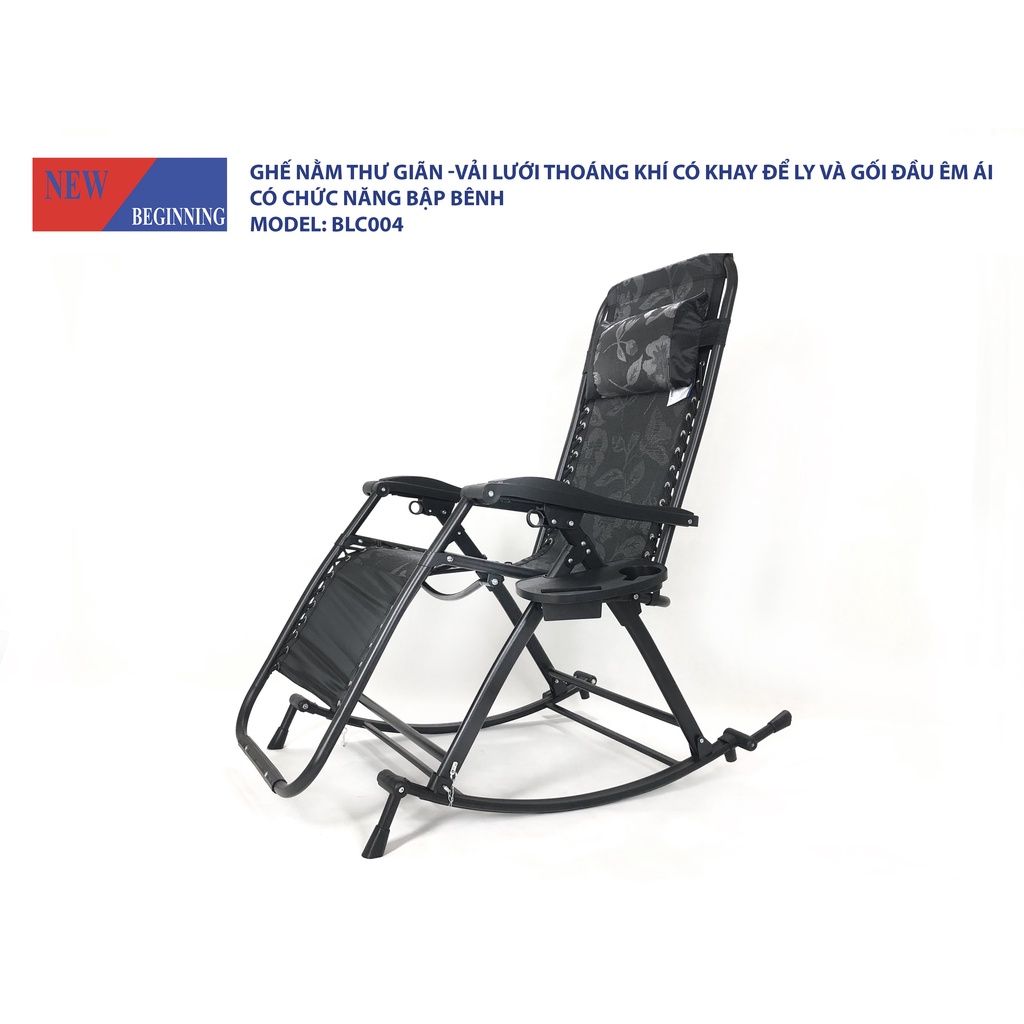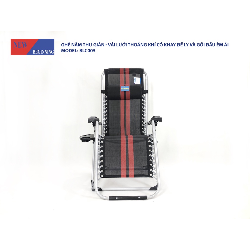 Ghế nằm thư giãn - ghế ngủ trưa văn phòng - gập gọn - thoáng khí New BeginningSẢN PHẨM BAO GỒM GỐI ĐẦU VÀ KHAY ĐỂ LY