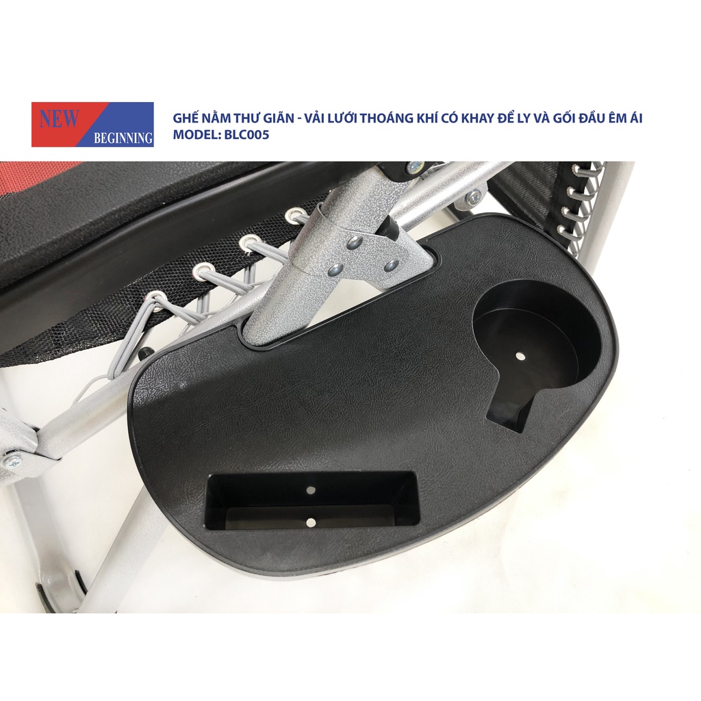Ghế Xếp Thư Giãn - Giường Gấp Đa Năng - Chất Liệu Vải Lưới Textilene - Kèm Khay Để Cốc NEW BEGINNINGSẢN PHẨM BAO GỒM GỐI ĐẦU VÀ KHAY ĐỂ LY