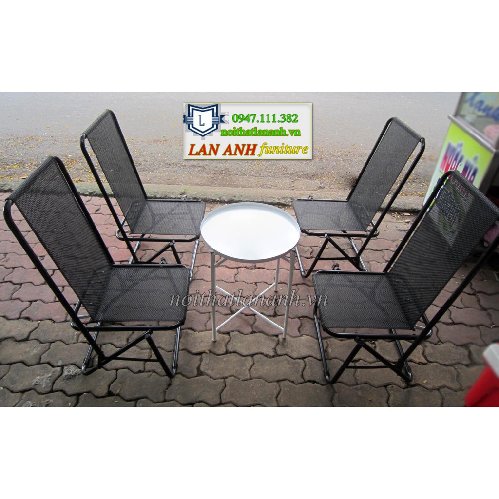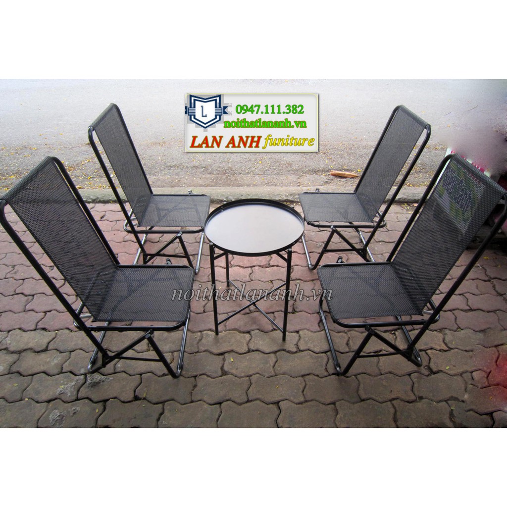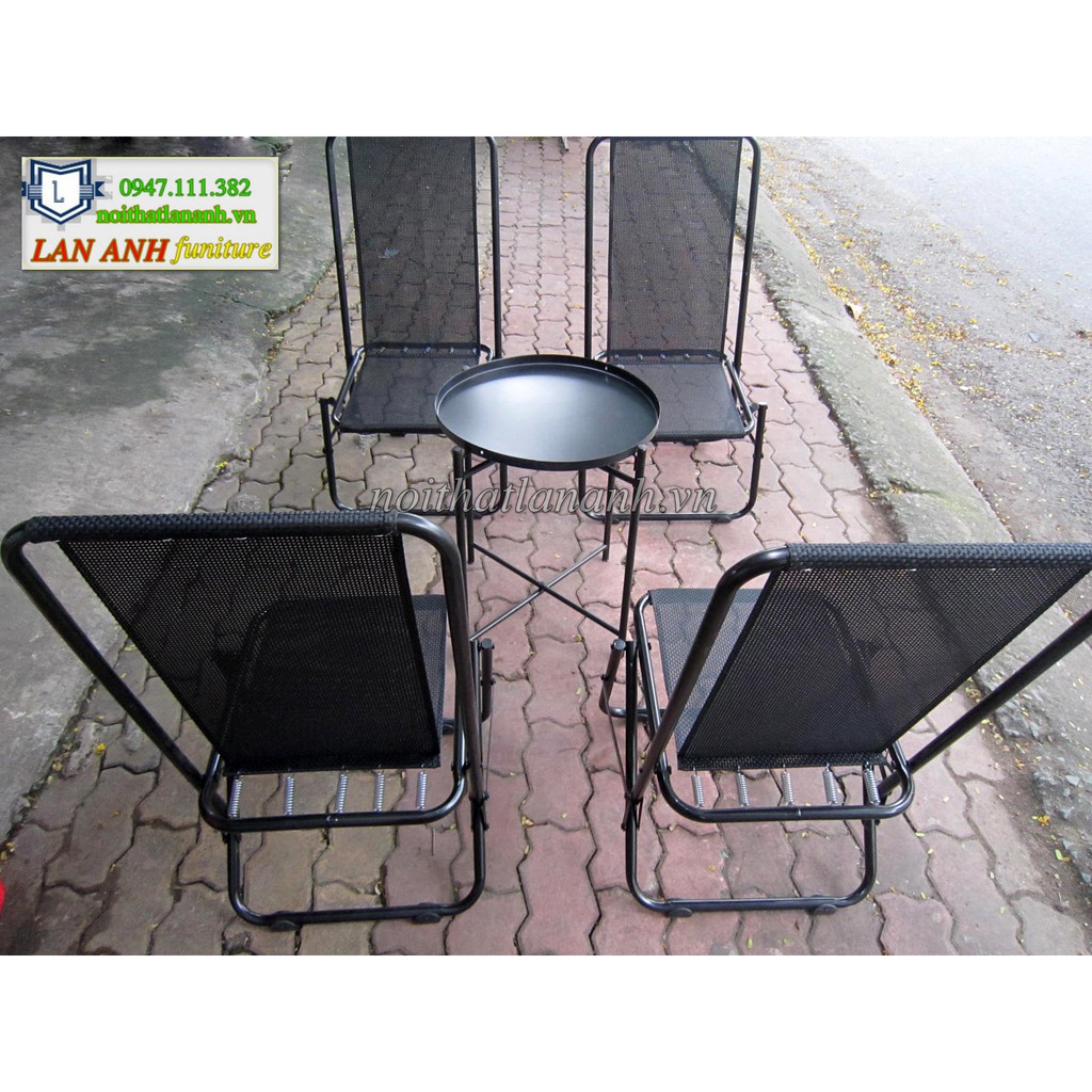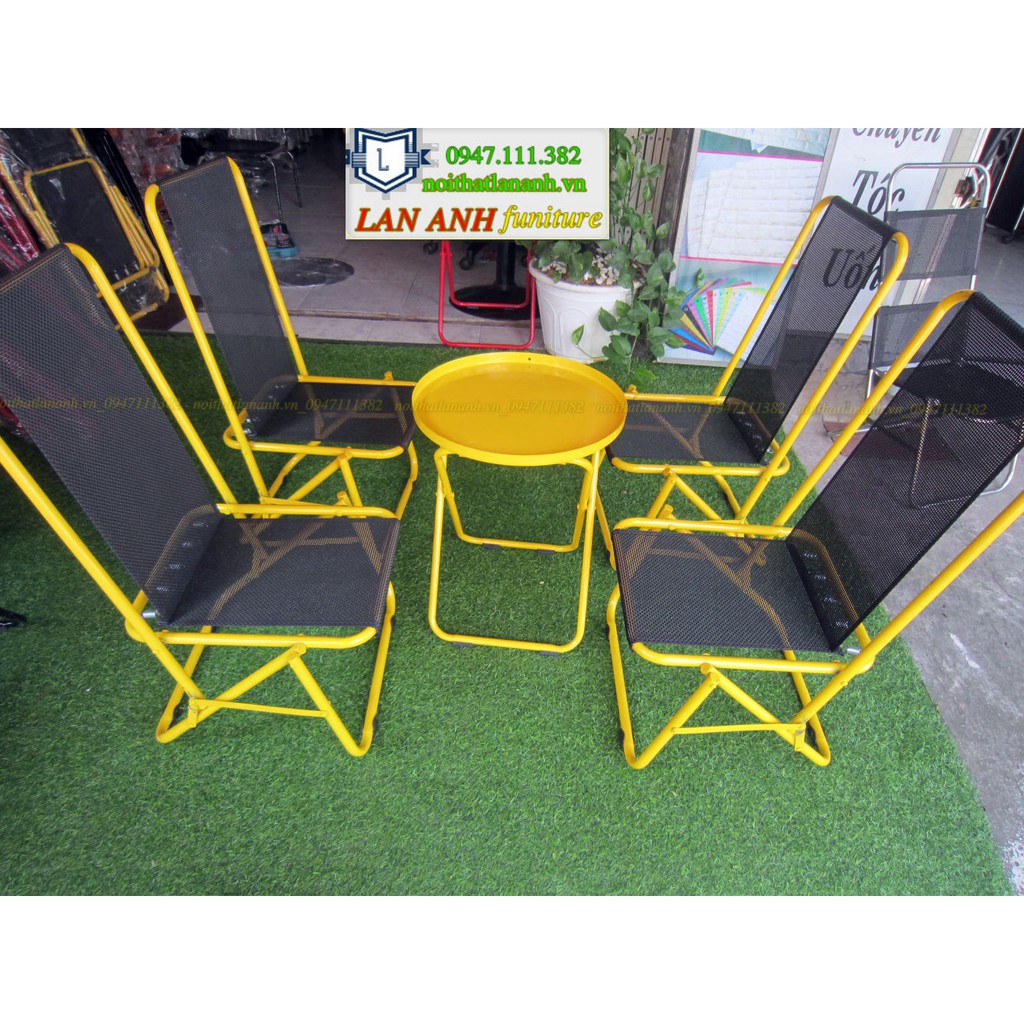 Bộ bàn trà chanh ghế xếp thép sơn tĩnh điện giá rẻThành phần: 1 bàn trà chanh và 4 ghế thép sơn tĩnh điện lưng cao