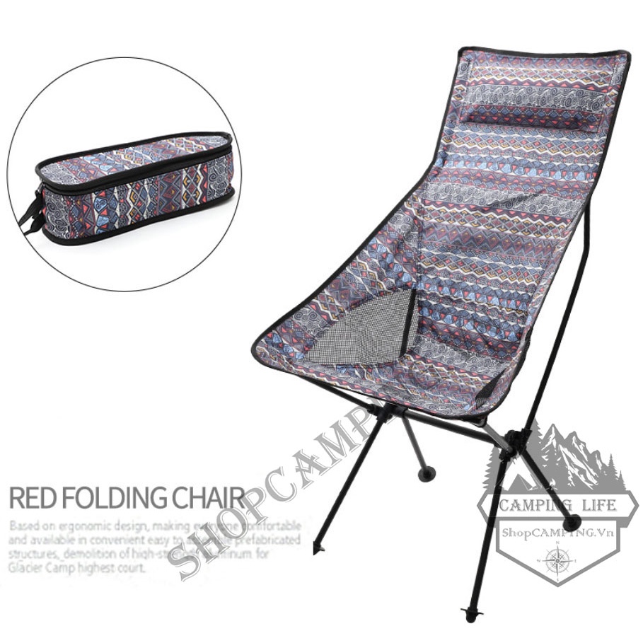 Giới thiệu Ghế xếp có gối và tựa cỡ lớn hợp kim nhôm dành cho cắm trại dã ngoại hoa văn thổ cẩm