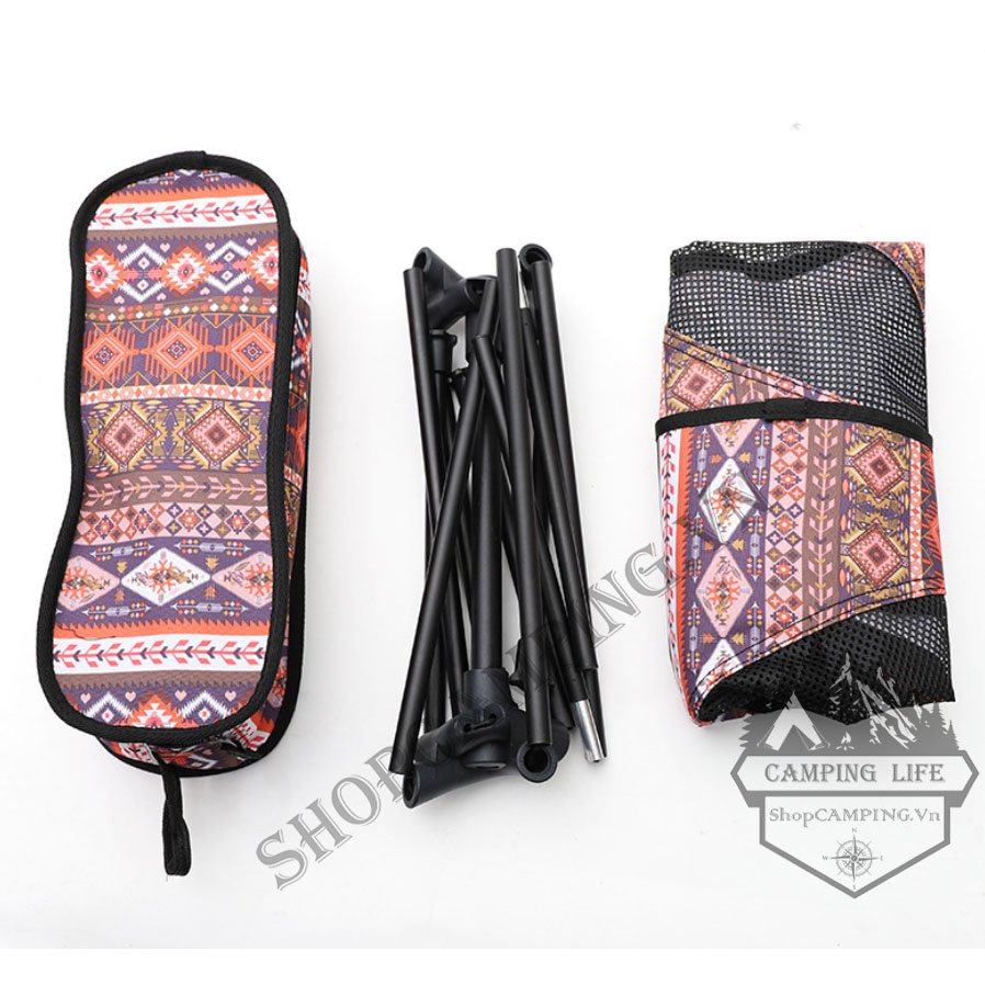 Ghế xếp có gối và tựa cỡ lớn hợp kim nhôm dành cho cắm trại dã ngoại hoa văn thổ cẩm
