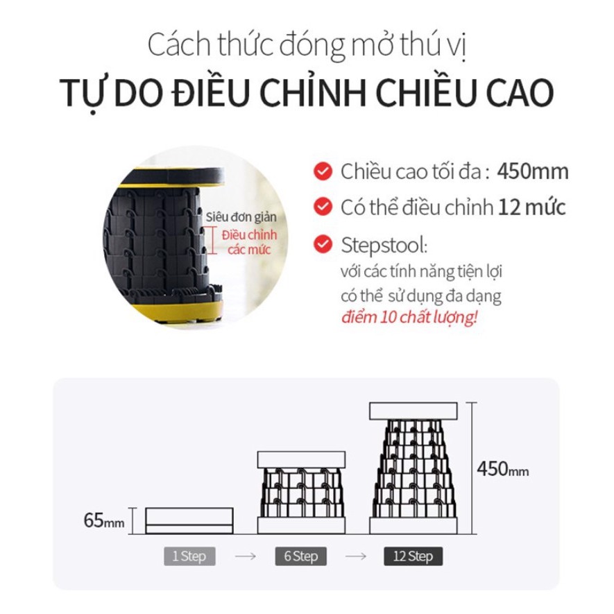 Ghế xếp di động TelescopicStool™ĐẶC ĐIỂM NỔI BẬT :