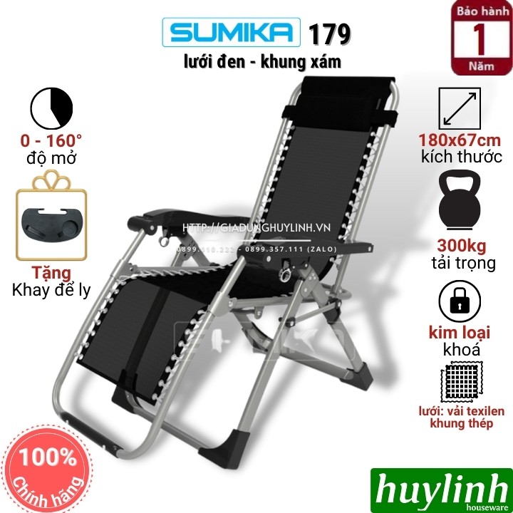 Ghế xếp gấp thư giãn Sumika 179 - Tặng khay để ly - Tải trọng 300kg - Khoá kim loại cao cấp