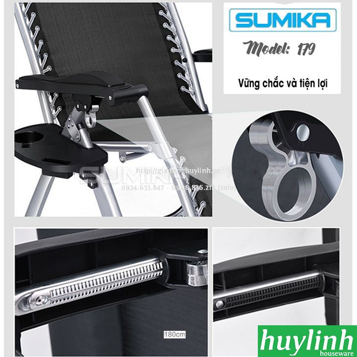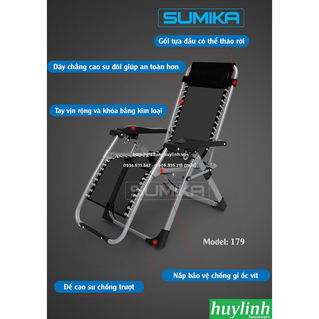 - Ghế xếp thư giãn Sumika 179 là sản phẩm khá gần gũi trong cuộc sống hiện đại, giúp bạn thư giãn thoải mái sau những giờ phút làm việc mệt mỏi. Đây là chiếc ghế có thể sử dụng được ở nhiều hình dạng, tương ứng với nhiều tư thế ngồi và ngả lưng khác nhau.