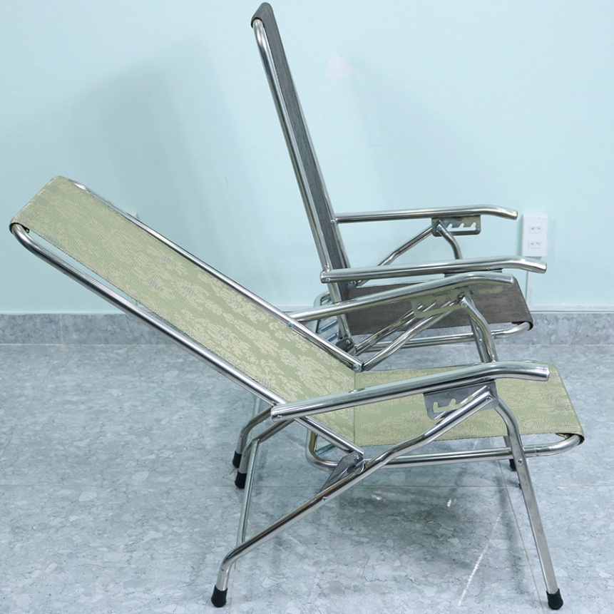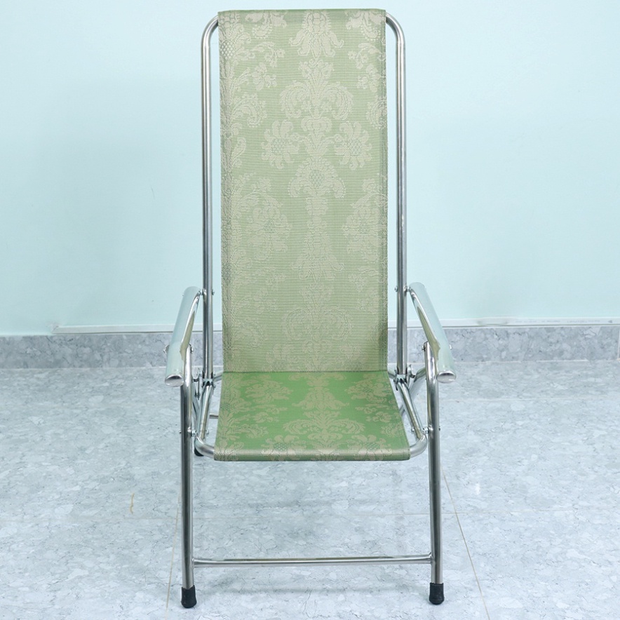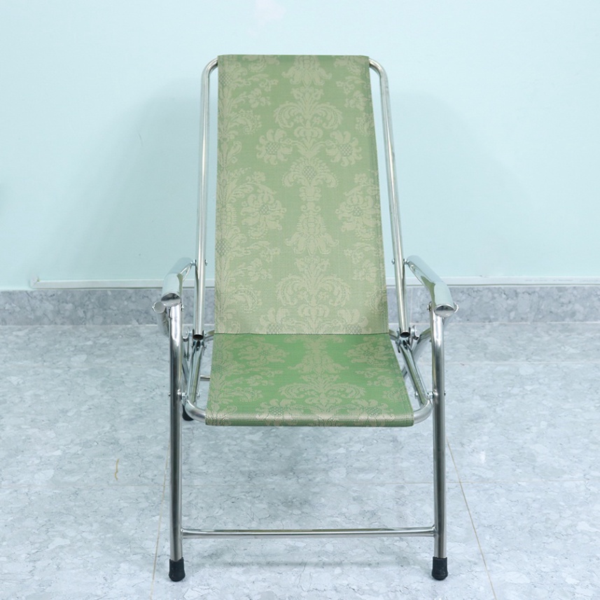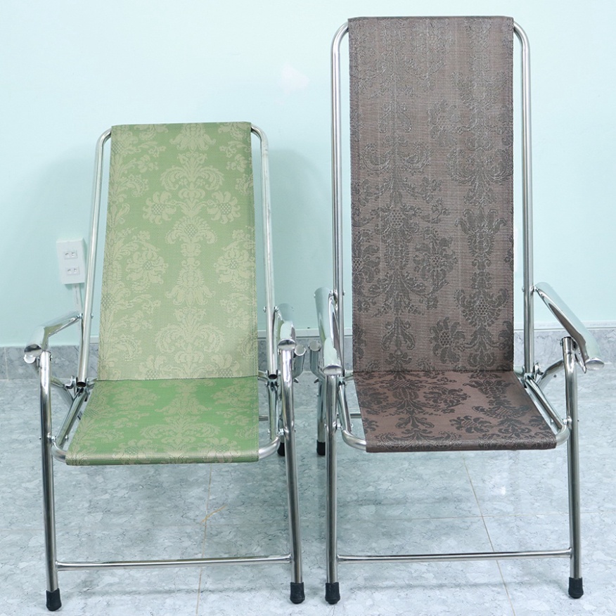 Ghế xếp inox gấp gọn có 4 bậc tựa lưng lưới thổ cẩm_Võng xếp Thảo Điều