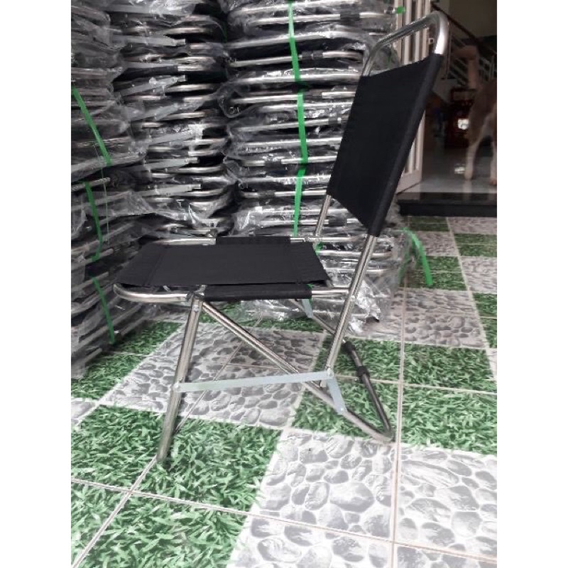GHẾ XẾP INOX VẢI DÙ cho quán Trà Chanh, Cafe, vỉa hè, Câu Cá,dã ngoại