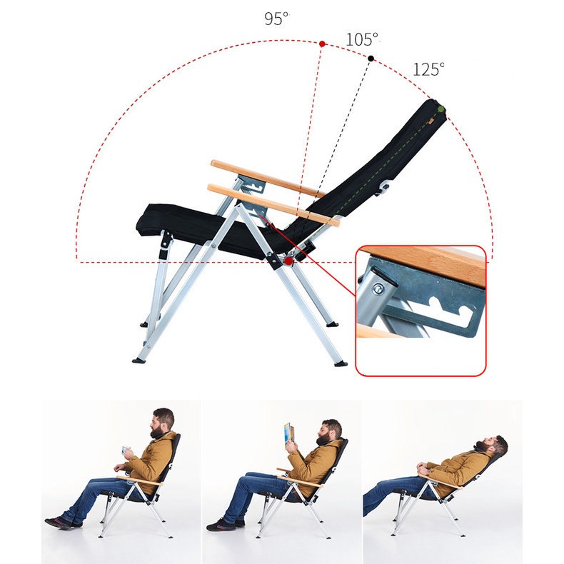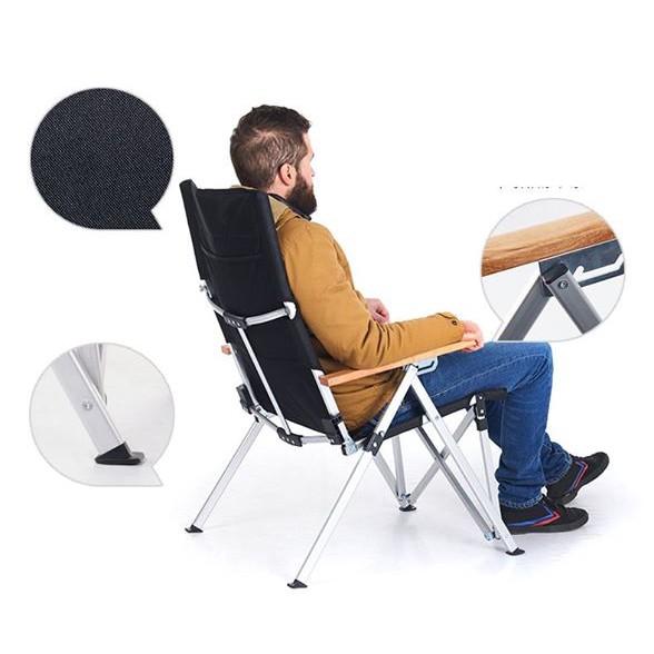 Ghế ngả ba cấp độ Naturehike có thiết kế vô cùng tiện dụng giúp bạn có thể điều chỉnh phần lưng tựa một cách linh hoạt để ngồi thẳng hoặc ngả lưng cộng thêm chiếc tay vịn gỗ giúp bạn thoải mái và dễ chịu hơn khi sử dụng.