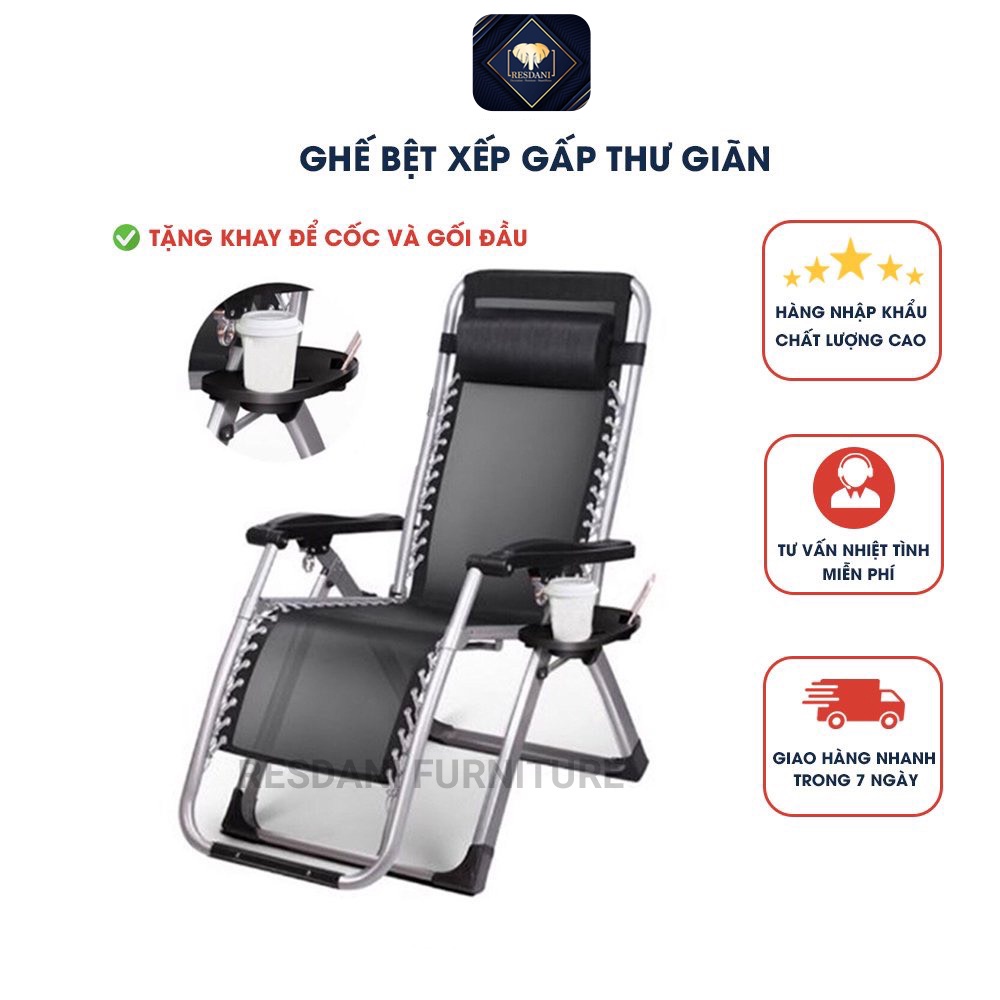 Ghế Xếp Ngủ Trưa Thư Giãn Đa Năng Resdani A169 –Tặng Khay Để Cốc Và Gối Đầu(Có Video Sản Phẩm)