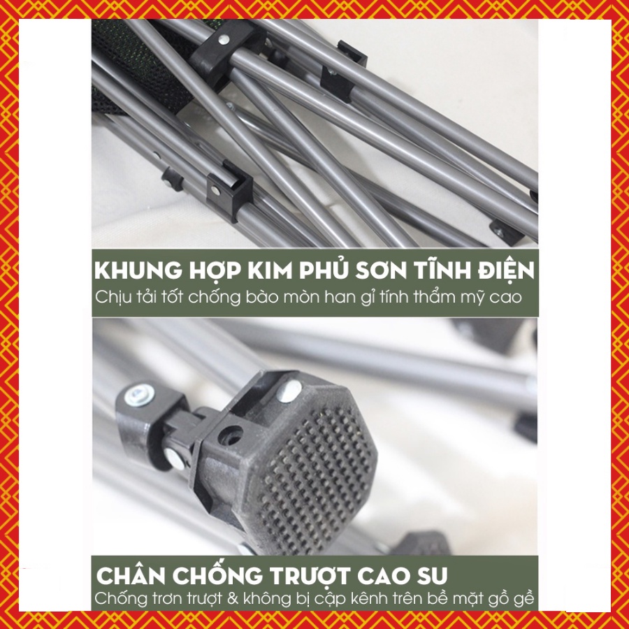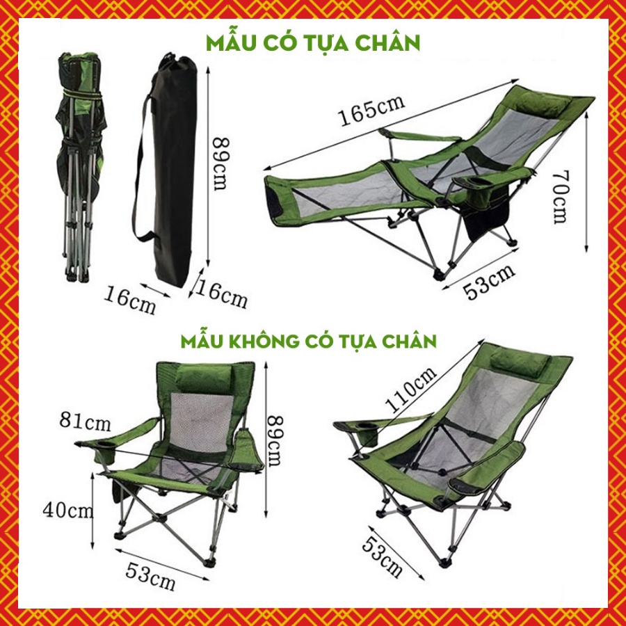 - Ghế xếp du lịch Kích thước khi duỗi: rộng 62cm, dài 85cm, cao 38cm
