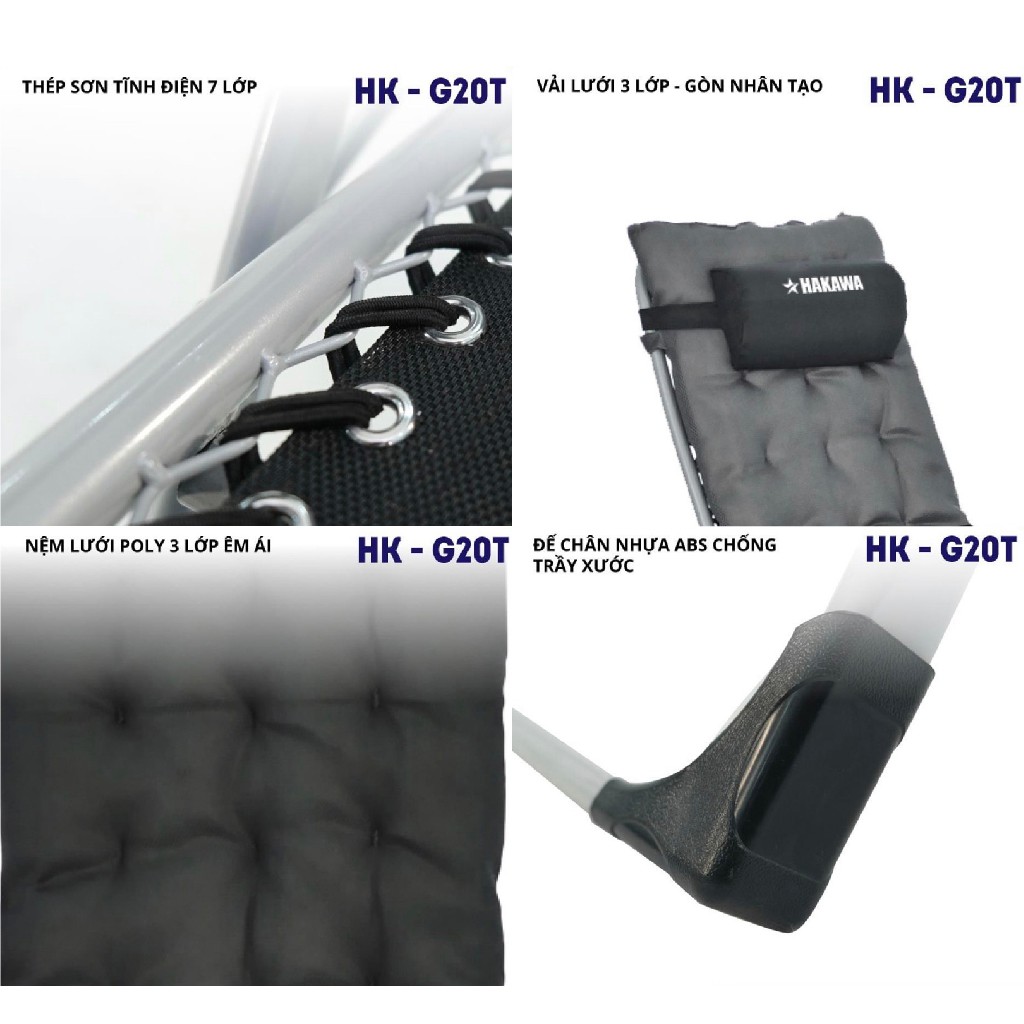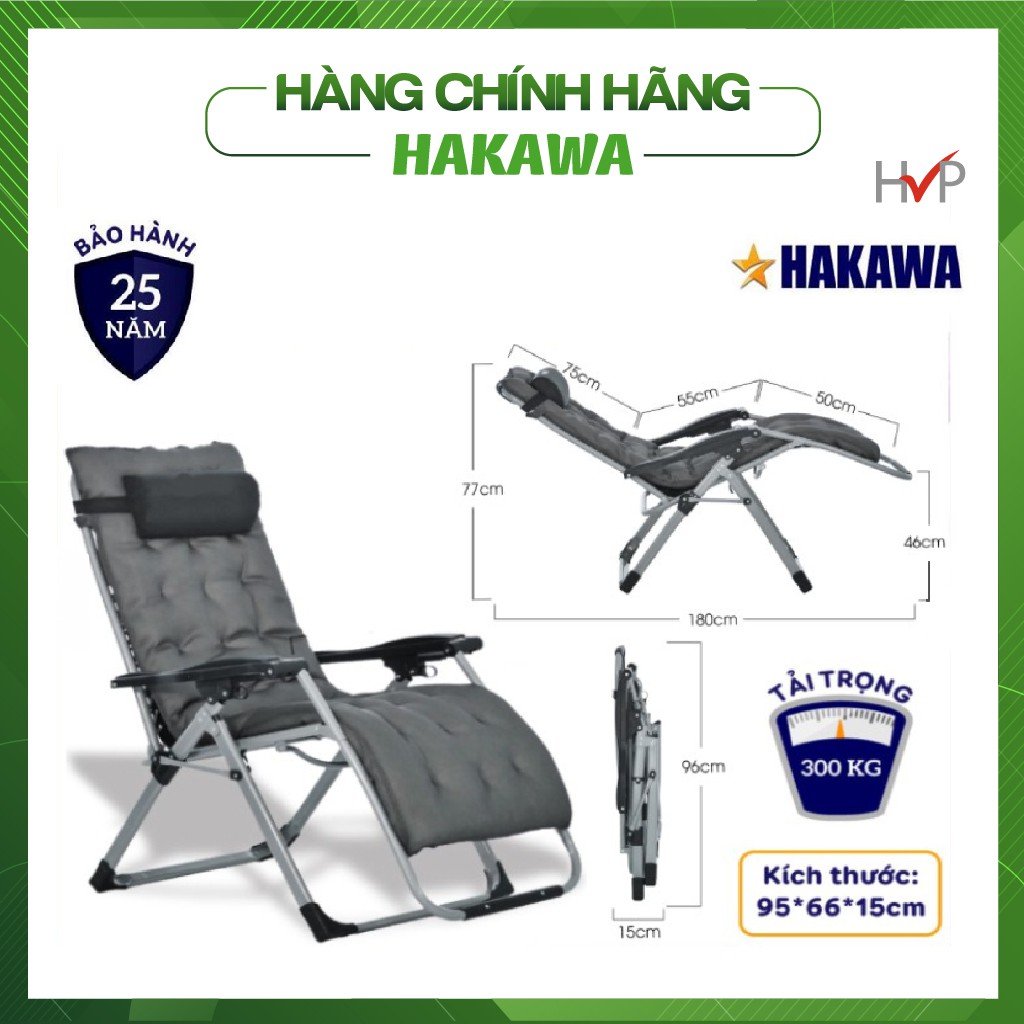 - Ghế xếp thư giãn HAKAWA sử dụng thép cao cấp sơn tĩnh điện dày1mm để làm khung ghế, tăng tải trọng lên 300kg.