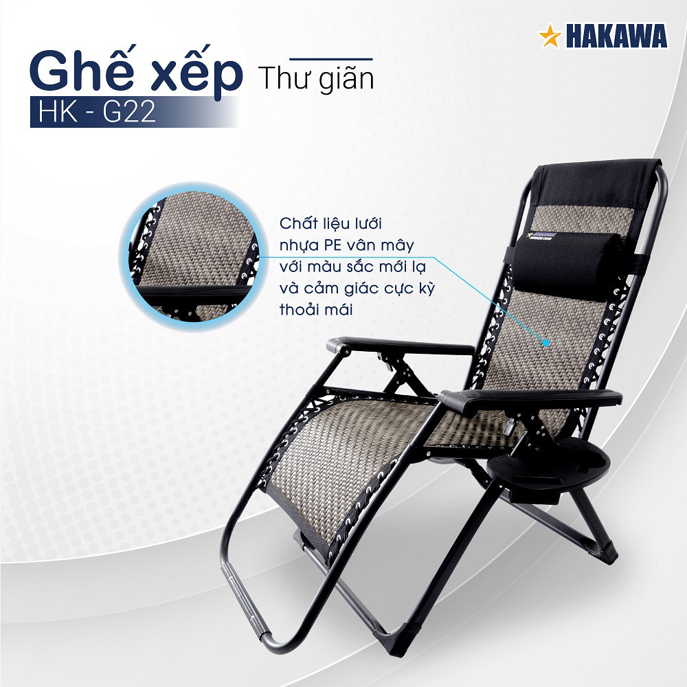 Ghế xếp thư giãn hạng sang HAKAWA - HK-G22 ( CÓ NỆM ) - Bảo hành 25 năm - Thay lưới, nệm miễn phí 5 năm