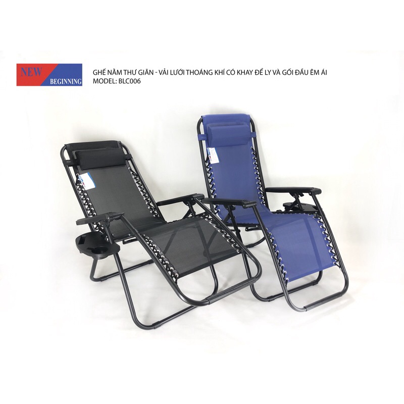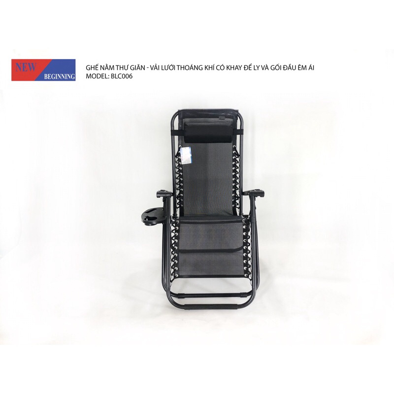 Ghế nằm thư giãn - ghế ngủ trưa văn phòng - gập gọn - thoáng khí - có khay để bình nước và gối đầu - New BeginningMã hàng: BLC006