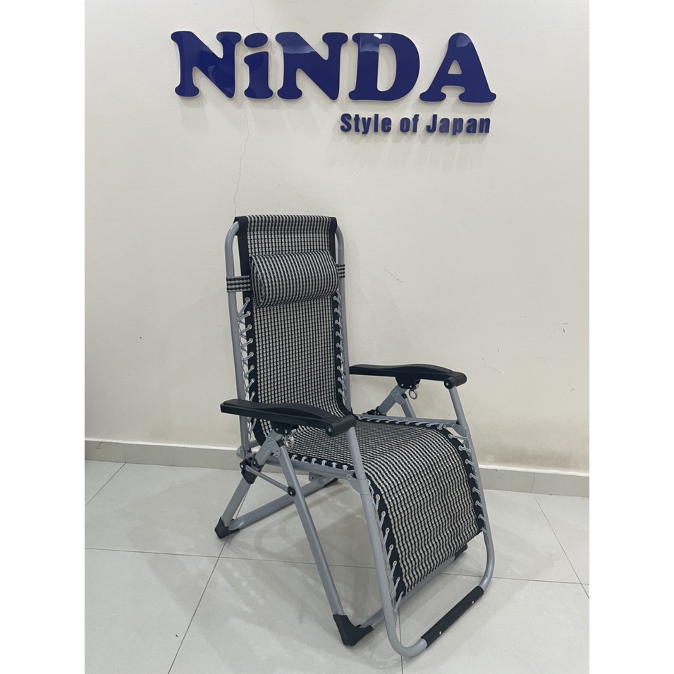 Ghế Xếp Thư Giãn Ninda Gấp Gọn- Khung Thép Sơn Tĩnh Điện- Bảo Hành 2 Năm , Tặng Kèm Khay Đựng Cốc