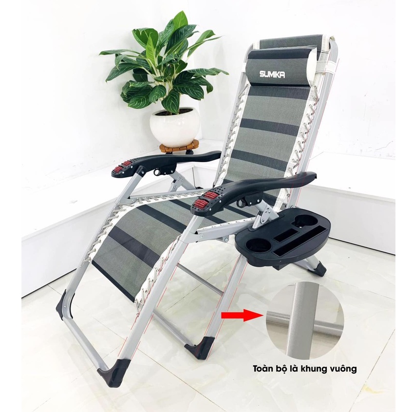 Nhà cửa & Đời sống > Nội thất > Ghế, ghế dài, ghế đẩu || Ghế xếp thư giãn Sumika 199 - Khung vuông 100% chắc chắn hơn, tặng khay lyCòn hàng