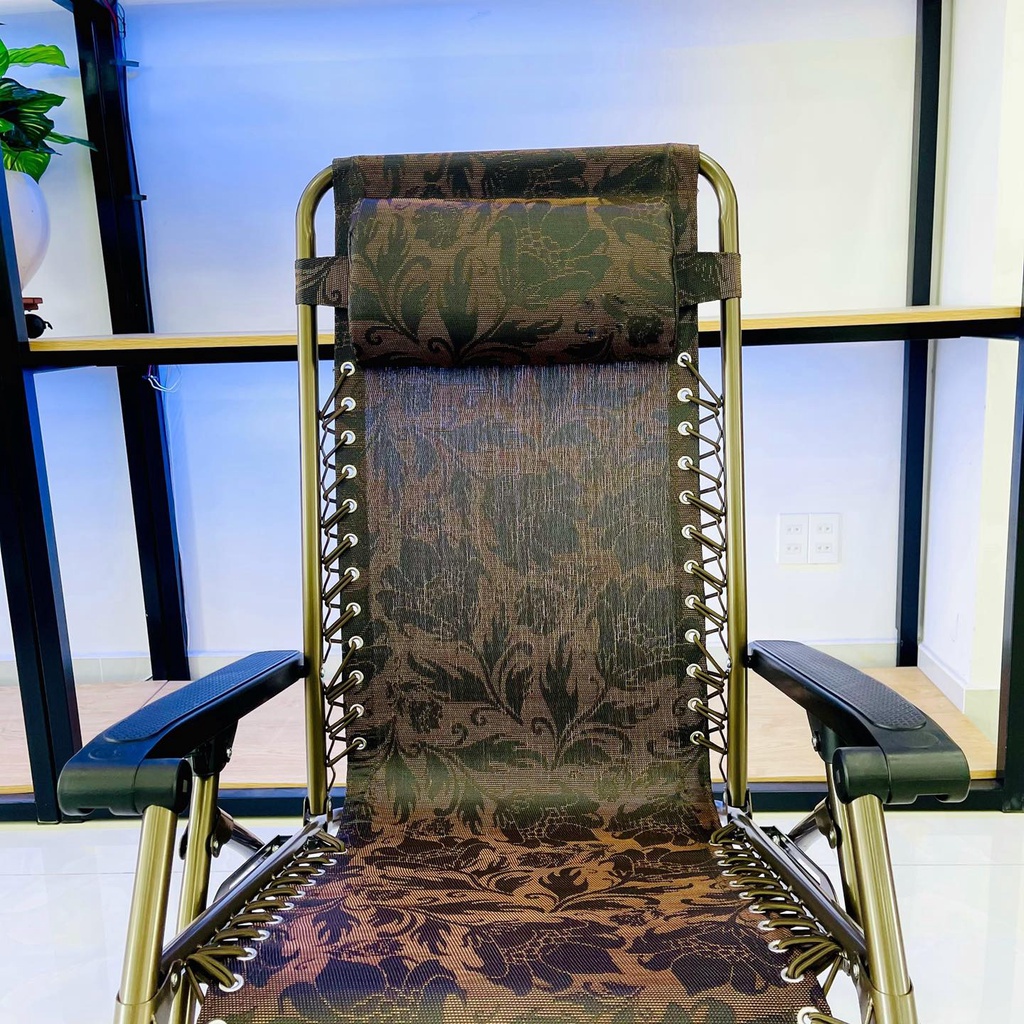- Giường xếp thư giãn chất liệu vải textilene bền, thoáng mát, không thấm nước, chịu nắng gió; khung bằng sắt, thép sơn tĩnh điện.