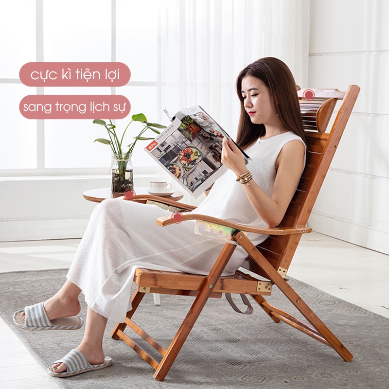 Ghế xếp thư giãn TẶNG KÈM GỐI ngủ trưa văn phòng, ghế người già tùy chỉnh góc mở kiểu dáng mây đan thoáng khí
