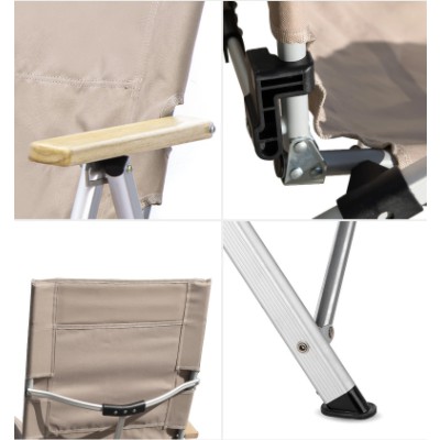 - Chất liệu: Vải Nylon 600D, Khung nhôm ống, tay vịn gỗ