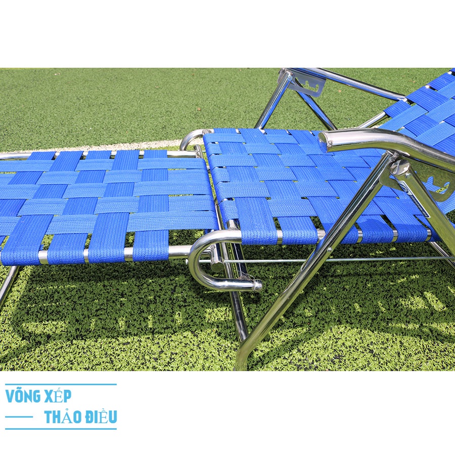 Ghế được đan bằng Dây dù bẹ thoáng khí nên sẽ làm cho người sử dụng cảm giác mát mẻ thoải mái và nấc điều chỉnh ngã lưng linh hoạt 4 nấc để có thể thay đổi các tư thế nằm nhằm mang lại thoải mái nhất cho người sử dụng.