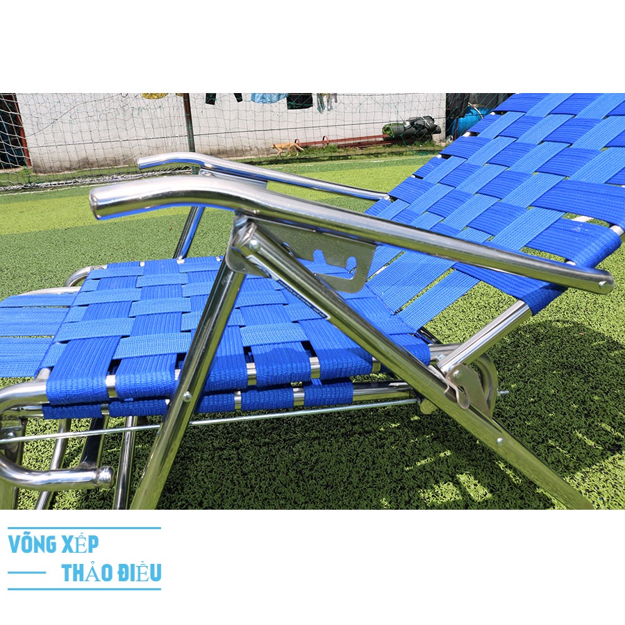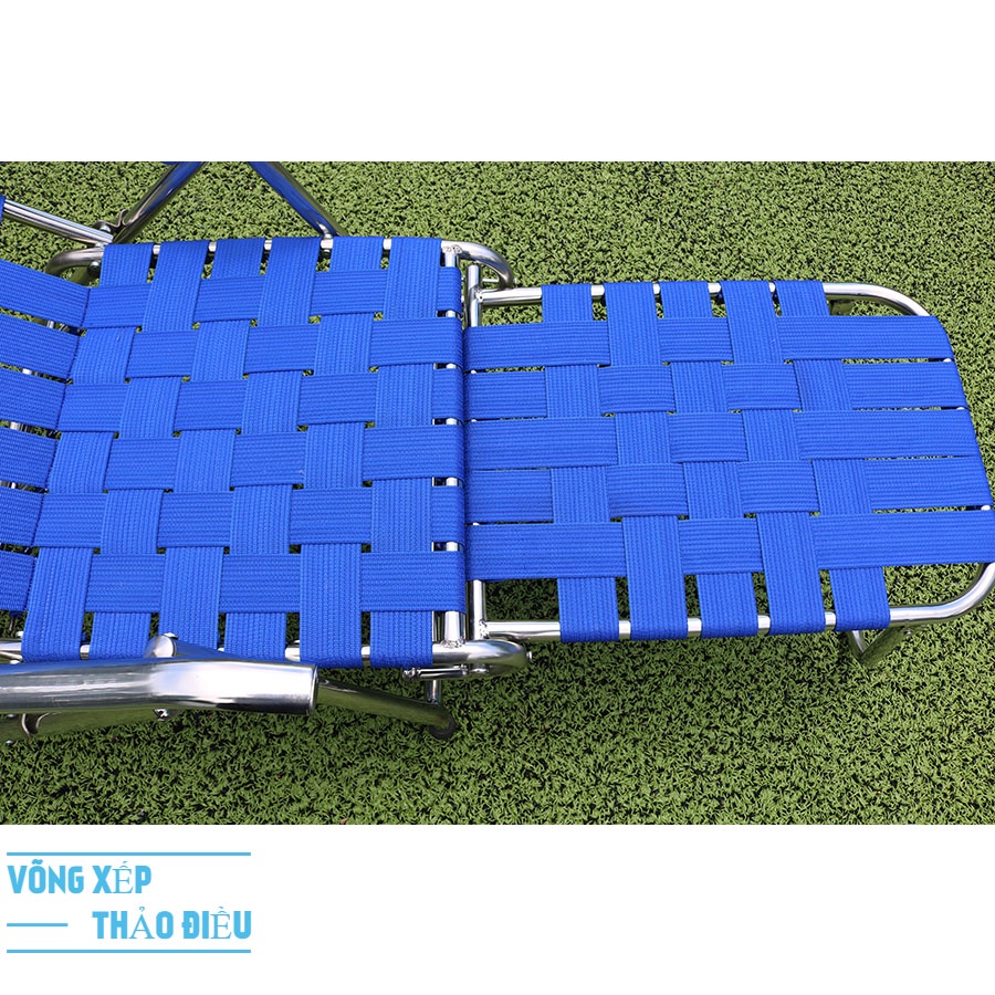 Ghế được đan bằng Dây dù bẹ thoáng khí nên sẽ làm cho người sử dụng cảm giác mát mẻ thoải mái và nấc điều chỉnh ngã lưng linh hoạt 4 nấc để có thể thay đổi các tư thế nằm nhằm mang lại thoải mái nhất cho người sử dụng.