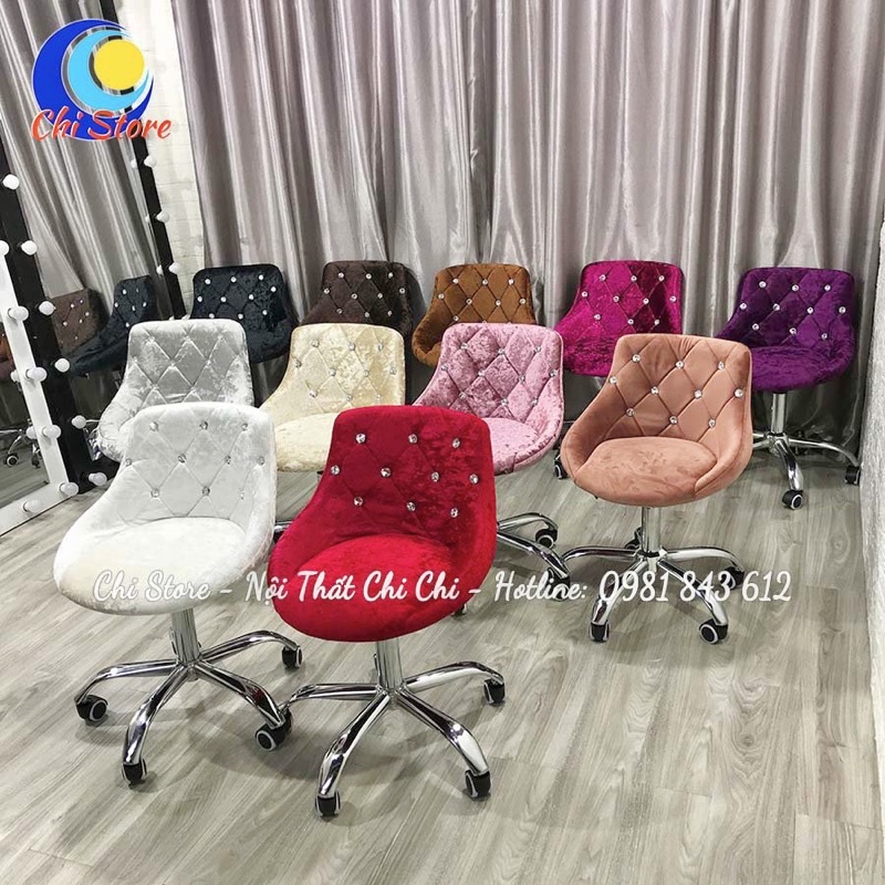 Giới thiệu Ghế Xoay Bánh Xe Văn Phòng Nỉ Nhung, Ghế Trang Điểm Xoay, Makeup Điều Chỉnh Độ Cao Và Xoay 360 Độ