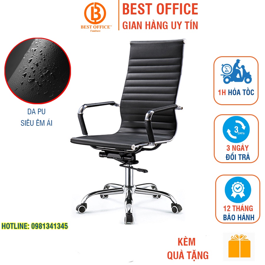 Ghế xoay da lưng cao Box208 - Ghế trưởng phòng da cao cấp - Xoay tròn - Nâng hạ - Đàn hồi, BH 12 Tháng