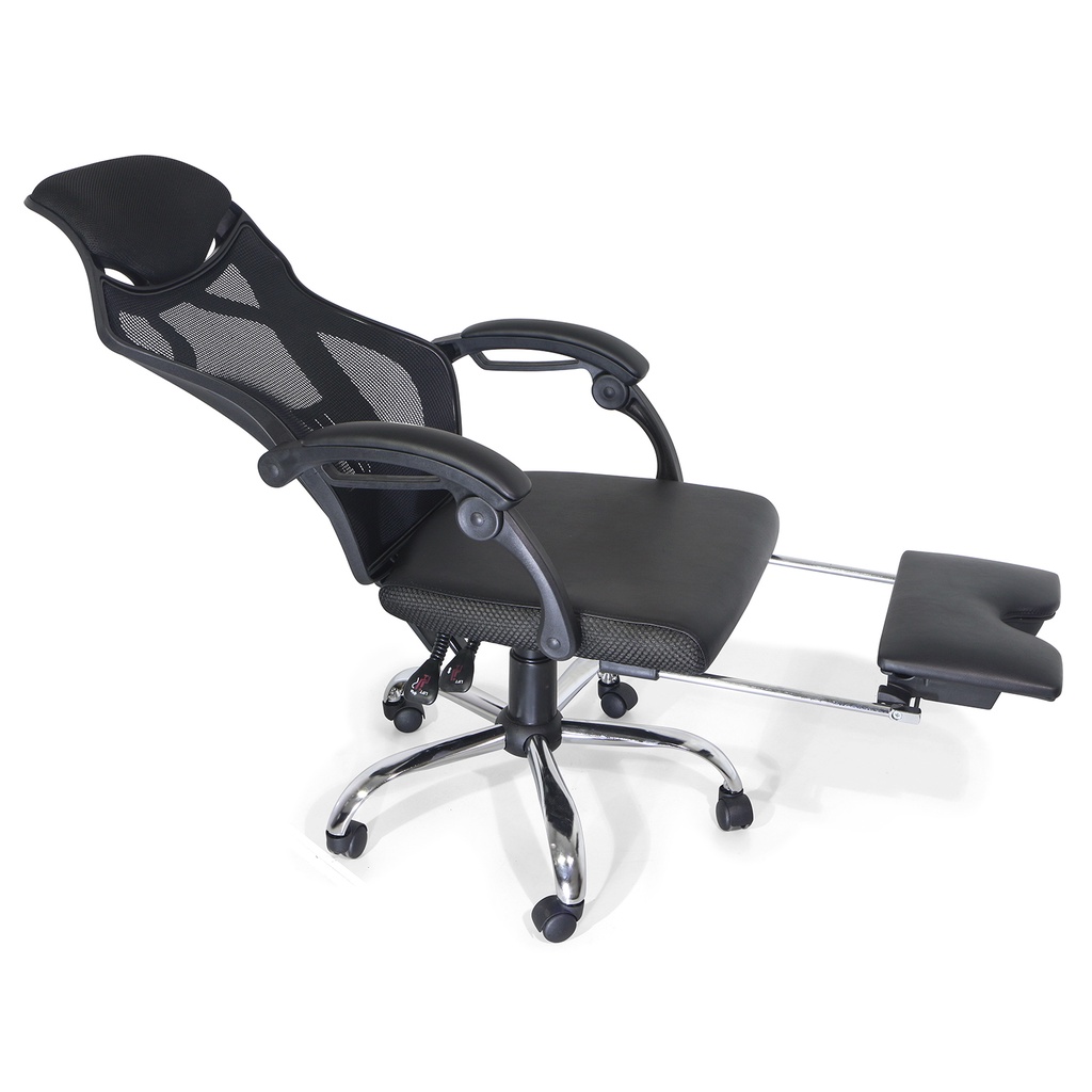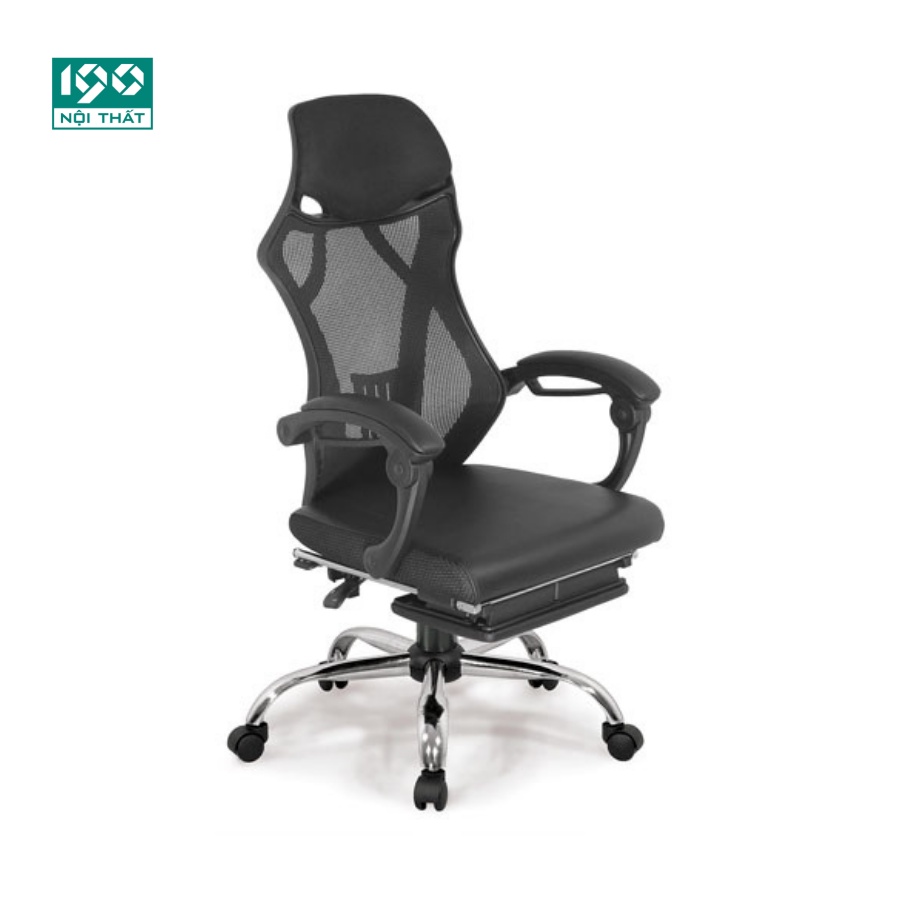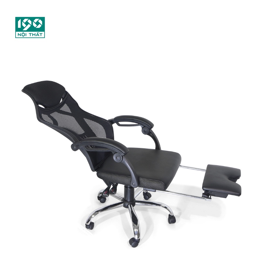 - Ghế xoay GX407B-M lưng lưới được thiết kế độc đáo với cơ cấu đệm chân có thể rút ra khi nằm nghỉ, tay ghế co duỗi theo lưng.