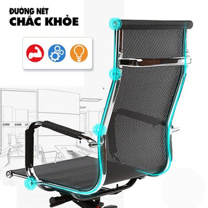 - Chiều cao ghế thay đổi dễ dàng tương ứng với chiều cao bàn làm việc của bạn.