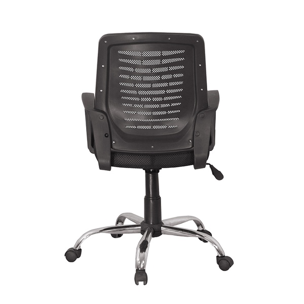 - Lưng ghế với khung nhựa đàn hồi cao cấp và mặt tỳ lưng bằng vải lưới tạo sự phân bổ đồng đều áp lực, lưu thông không khí, tránh sự tích nhiệt. Đêm được làm bằng da, tay nhựa đúc và chân sao mạ cr+niken.