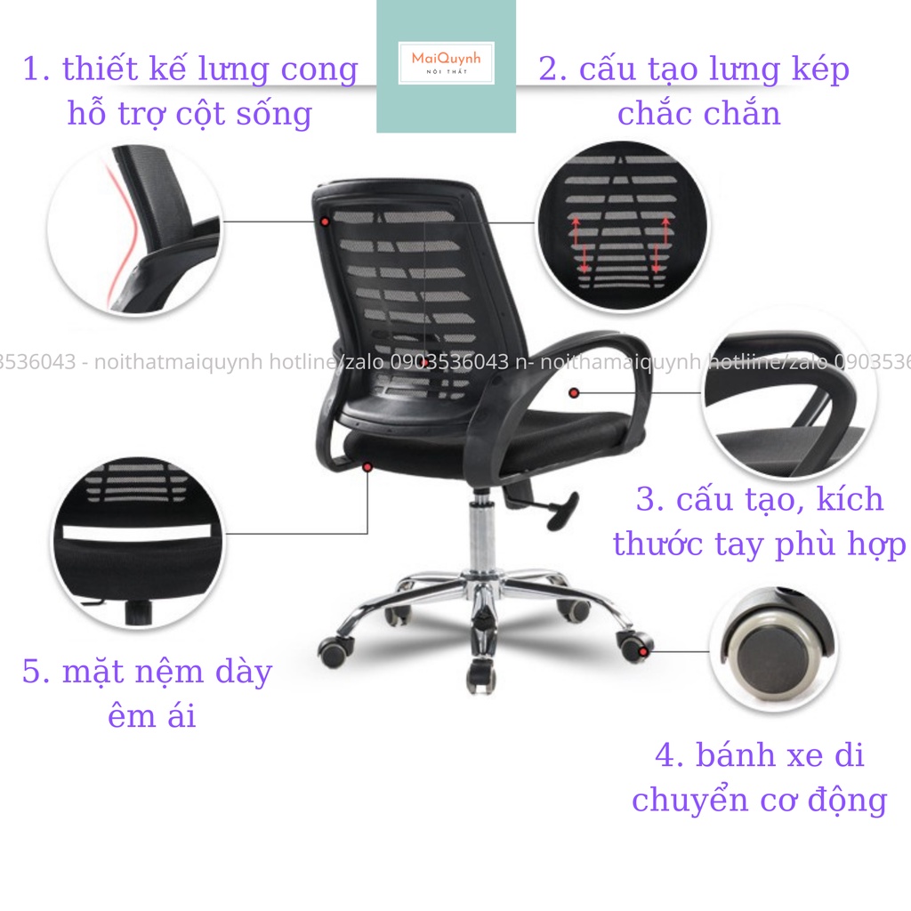 tính thẩm mỹ của GHẾ LƯỚI VĂN PHÒNG . kết hợp với các loại bàn nội thất khác, GHẾ NGẢ LƯNG đem đến sự hài hòa và vẻ đẹp cho không gian mà nó hiện diện. GHẾ XOAY LƯNG KÉP thiết kế đơn giản hiện đang là xu hướng nội thất hiện nay. MUA GHẾ XOAY tại shop của chúng tôi, bạn sẽ có trải nghiệm tốt nhất