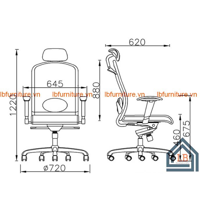 + Phần tay ghế điều chỉnh lên xuống theo mục đích sử dụng