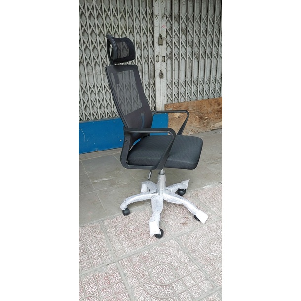 Ghế xoay lưới có tựa đầu với thiết kế hiện đại, sang trọng, ghế có gối tựa ở trên đầu tựa đầu có thể tháo rời nếu không có nhu cầu sử dụng..Chất liệu: Vải lưới ,chân nhựa hoặc chân thép mạ