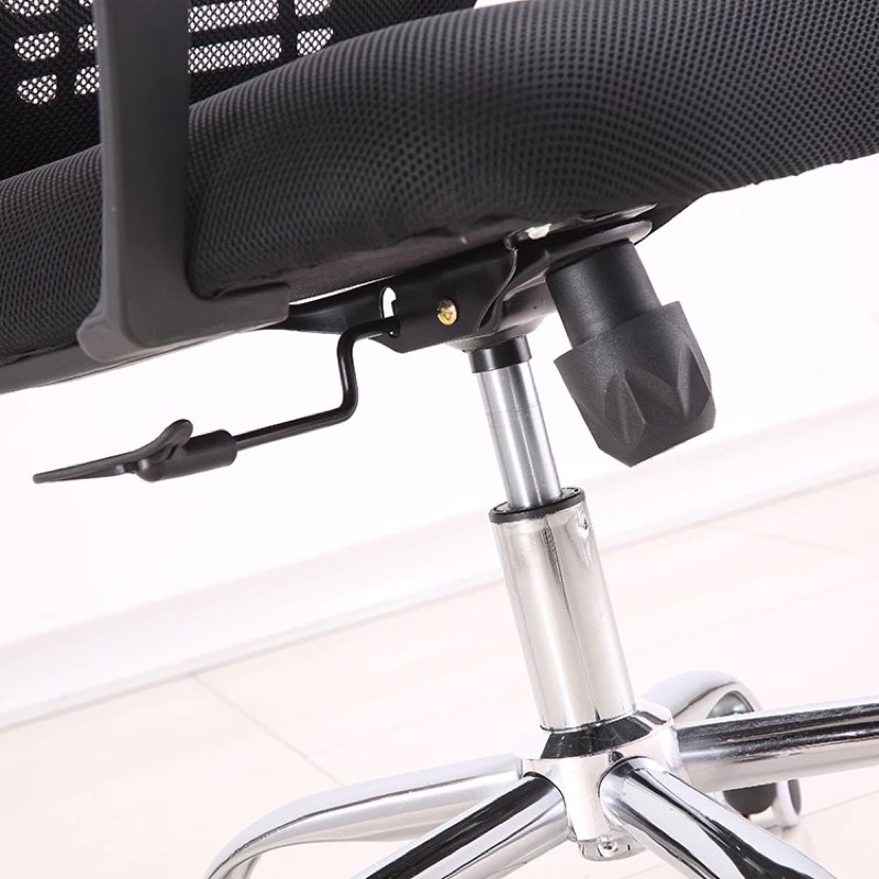 + Chân ghế bằng thép mạ crom chống rỉ, gồm 5 cánh cân bằng chắc khỏe