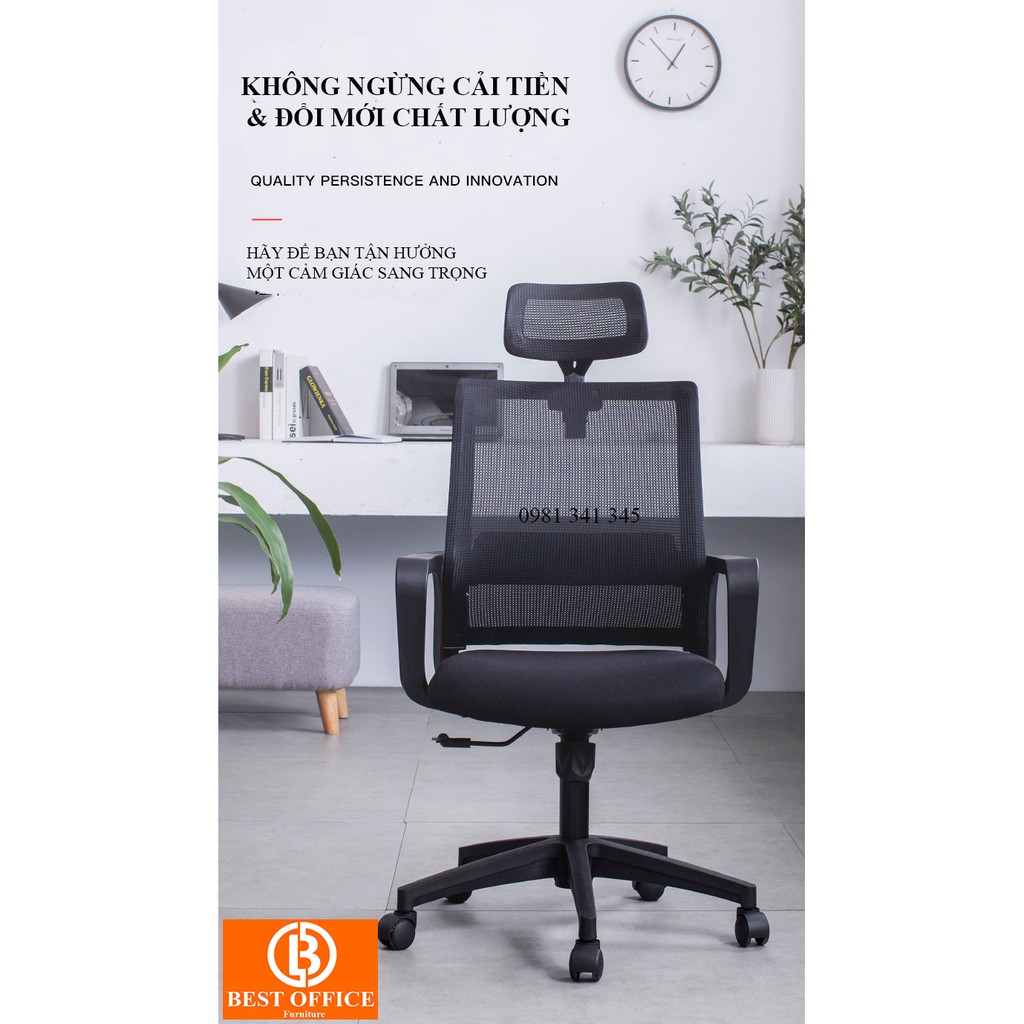 Ghế xoay lưới tựa đầu cao cấp B0171- Xoay 360 độ - Nâng hạ cao thấp - Chống ê mỏi cổ